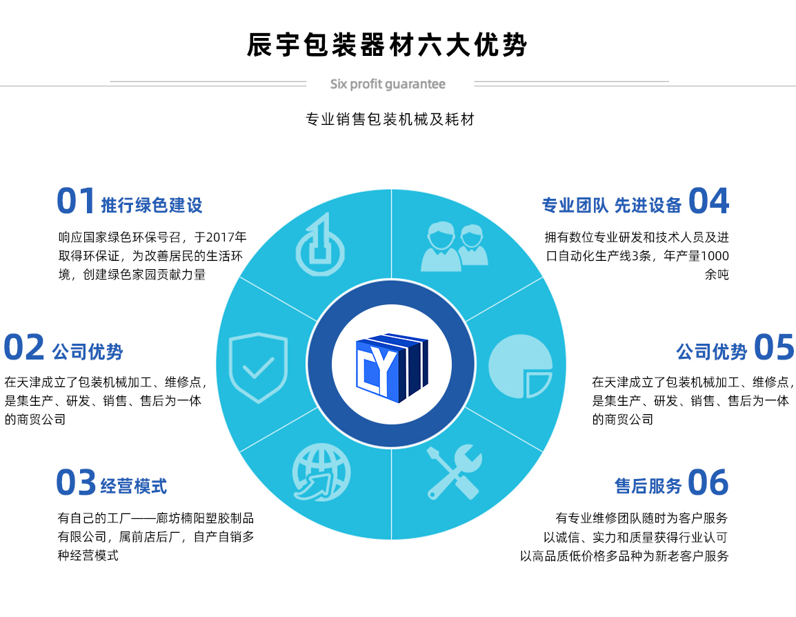 天津辰宇包裝器材有限公司原天津市辰宇商貿(mào)有限公司,位于天津市南開區(qū)密云一支路新南馬路五金城二區(qū)33棟106號,本公司主要經(jīng)營:打包帶,打包機系列,封箱機系列,纏繞機系列,拉伸膜,膠帶,尼龍繩,其他包裝耗材等產(chǎn)品 公司產(chǎn)品質(zhì)優(yōu)價廉,暢銷全國各大城市。同等質(zhì)量比價格,同等價格比質(zhì)量,我們確保質(zhì)量,價錢合理,交貨迅速及時。公司始終秉承“精益求精,鑄造品質(zhì)的典范”的經(jīng)營理念,真誠為廣大客戶提供真誠的服務(wù)! 天津市辰宇包裝器材有限公司,感謝廣大新老客戶的鼎力支持,竭誠歡迎社會各界朋友前來洽談業(yè)務(wù),愿真誠合作攜手共創(chuàng)美好未來!